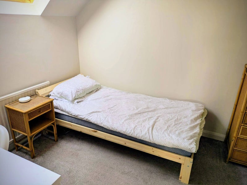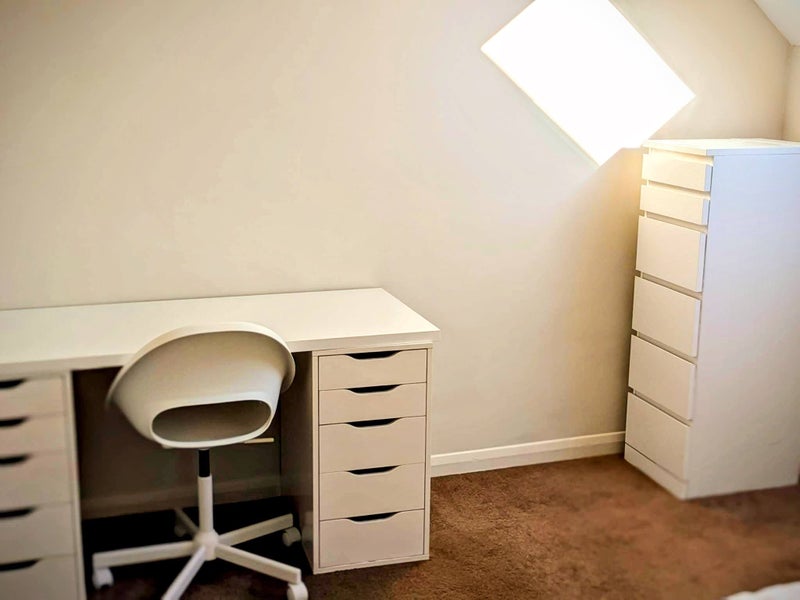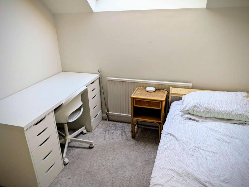 Each bedroom has a single bed and side table, Velux window, large walk in cupboard, clothes rail, desk and drawers. Tenants have the use of all living space apart from the landlords bedroom. The kitchen has a washing machine dishwasher, air fryer and microwave.
