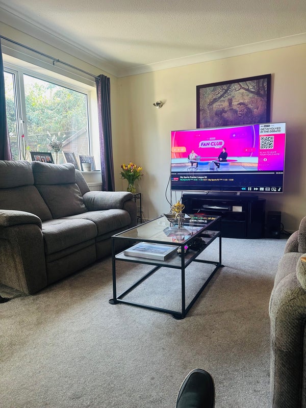 Large room furnished with own mini lounge with sofa and 42” tv. Sky and Netflix.