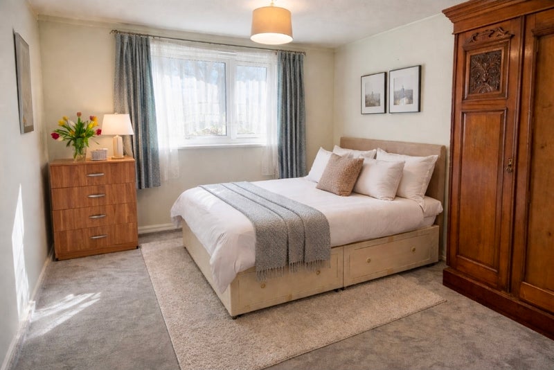 A bright and fully furnished double room available in a clean and well-maintained house in Stevenage (SG1).