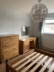 Larger than average double room with own bathroom, including bath and separate shower. Large shared kitchen, living area and separate dining room with large garden and driveway parking. Would suit couple - please ask for details