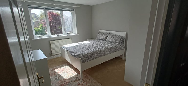We have a bright, fully furnished double room available in our spacious, 4-bedroom detached house in Hitchin. The room overlooks the garden and is part of a welcoming, supportive household.