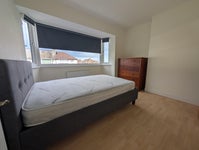 The room is double-sized, with a 4ft bed and a large bay window. It includes a spacious chest of drawers and an under-stairs closet.