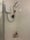 Bathroom has both electric shower and bath plus extra storage below sink.
