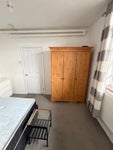 Room comes furnished with a bed and wardrobe.