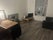 Furnished room including double bed, wardrobe and storage. Living room with dining table and sofa