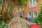 The house has a large living room, a separate kitchen, a dining room, and a nice private outdoor courtyard at the back. There’s also a utility room and additional storage space.