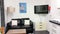 The kitchen is equipped with Dishwasher, Washing machine, (Dryer is in a hallway cupboard) Tall fridge Freezer, single fridge and Microwave. There is a dining room table and 2 seater sofa with a wall mounted 42 inch TV.