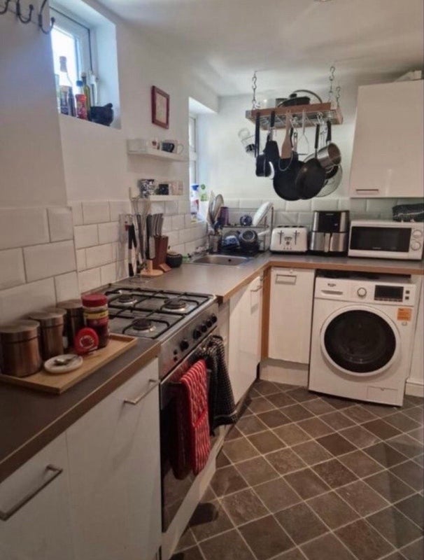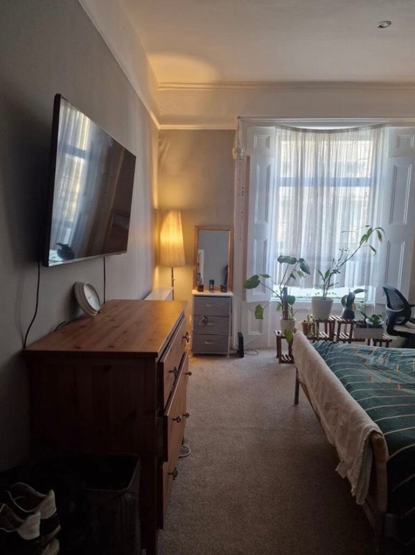 King size room available in a delightful 2-bedroom, 1-bathroom flat in a great location. It has a good-sized living room, a separate modern kitchen, and a modern bathroom with a bath and a shower.