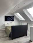 The flat consists of a fully furnished bedroom and en-suite. Included in price is: three quarter bed, TV and DVD player, under floor heating, WI-Fi, large fridge, microwave, kitchenware, toaster, clothes hanger, and absolutely loads of storage cupboards running down both sides of the room. En-suite has toilet and basin with hot water. There is plenty of room for off road parking in front and at the side of the garage.