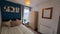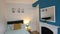 - Four furnished bedrooms, each with vibrant feature walls, artwork, rugs, curtains, and furniture including desks, wardrobes, lamps and bedside cabinets