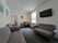 - A custom-built living & dining area fitted with sofas, as well as a bar and stools situated beneath the wall art.