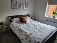 Hi. I'm looking to rent out my spare room in Stone, Staffordshire. The house is set on a quiet area of a new build estate not overlooked by anyone. There is a driveway with space for 2 cars, one for me and one for you. You will have access to a shared bathroom upstairs but there is also a guest toilet downstairs which can be used. There is a lounge, kitchen/dining area, aswell as access into the garden with seating area and bbq.