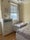 The room is bright and cozy. There is also a child’s bed in the room, which makes it ideal for someone with a child. The flat has two bedrooms and a living room with an open-plan kitchen.