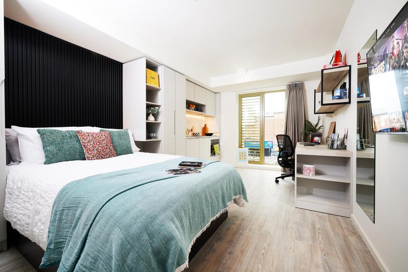 The room is located on the 13th floor, offering incredible views over Belfast! It’s a modern, fully furnished studio with: