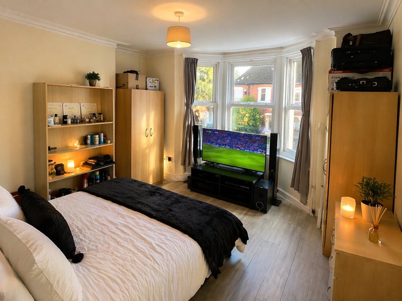 We’re pleased to offer a large furnished double room in a warm and friendly professional house share. The room is fully furnished with generous storage (2 wardrobes and chest of drawers). The landlord can also provide a desk and chair if required.