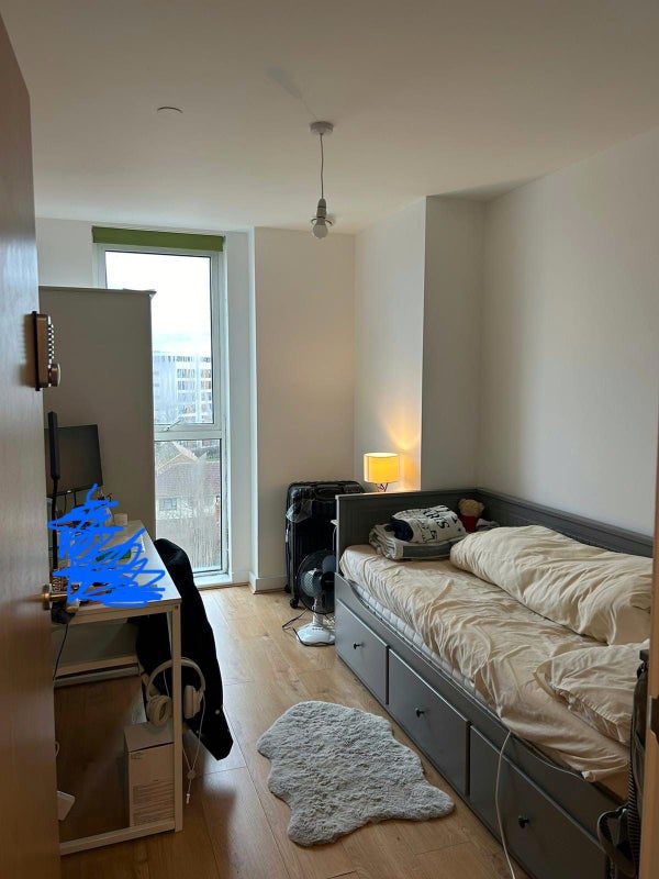 We have a double room (a single bed that cleverly converts to a double!) available in our modern two-bed two-bathroom place, so it comes with your separate bathroom! Access to a shared balcony and a bright, open-plan living area.