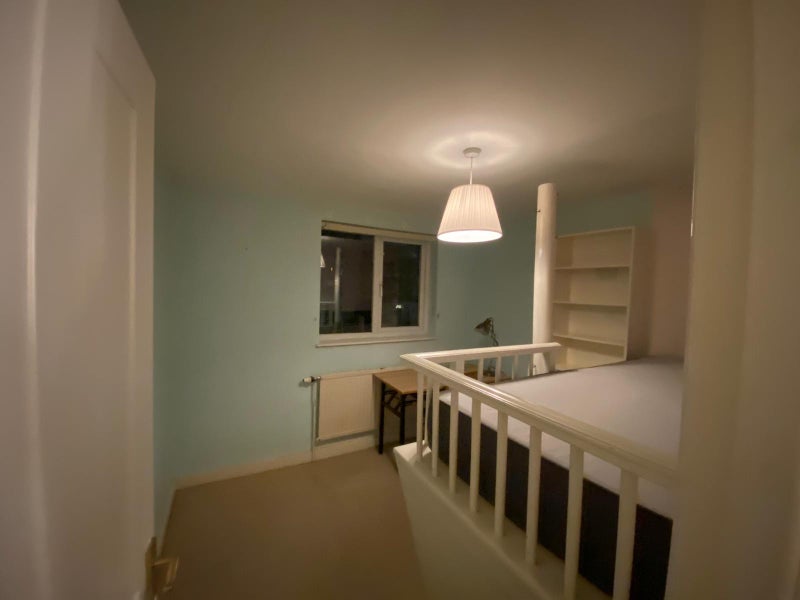 Downstairs there’s a spacious open-plan kitchen and living area, plus a second reception room that we use as a home office. If you work from home, there’s space to add another desk. You would share a bathroom on the middle floor with two others, which has both a bath and a shower. The house also has a washing machine and tumble dryer (though we mostly use drying racks).