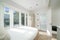 Open-plan living/sleeping space with large windows and natural light beaming through