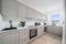 Modern fitted kitchenette with integrated fridge, freezer & washing machine, sink etc