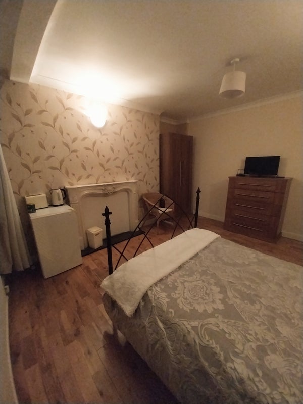 Large and spacious comfortable double room on the ground floor of my house. This is for one person only. (no couples). The room is a large sized double (approx. 15 ft x 15 ft). It is fully furnished with good quality furniture and has bedding. It also has a smart tv, full sized fridge, kettle and toaster. It has insulated solid oak floor and large windows, It is available for a period of six months minimum. It is in our shared house. The rent is £850 pcm and the deposit is also £850. All utility bills are included including broadband. Communal cleaning is provided free as is gardening and supply of some household basics (see below). This room also comes with an off-street parking space.