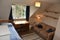 Room newly redecorated and furnished with single bed, wardrobe, drawers, shelves, desk and sofa.