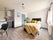 The shared spaces include an open-plan kitchen and dining area. There is also a private garden at the rear with outdoor seating.