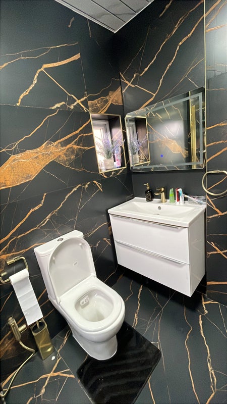 You will have access to our high-spec kitchen with an island and modern appliances, as well as a luxury bathroom featuring a rainfall shower and gold fixtures.