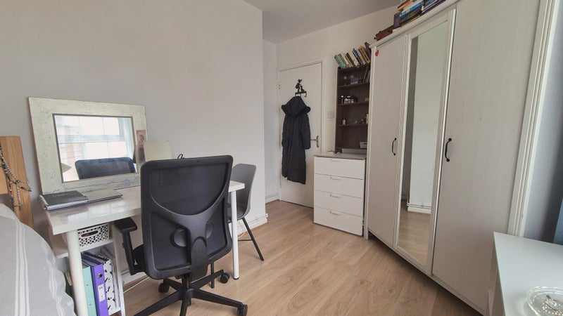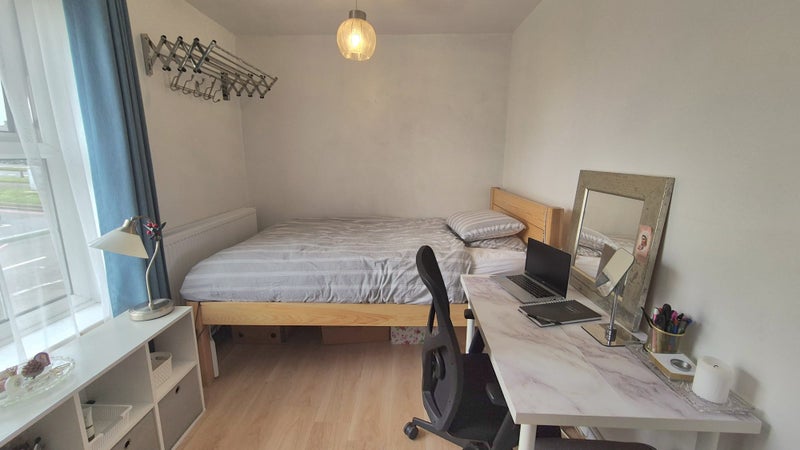 Bright and cosy double room is available in a quiet, friendly household. Fully furnished with a tall small double bed and plenty of storage.