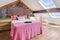 Refurbished high spec fully fitted kitchen with cosy banquette seating with a large dining table.