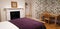 This room is equipped with a double bed, hanging rail, chest of drawers and bedside tables. It also has a bay window and an original Victorian fire-place with a mirror above.