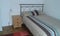 The room is fully furnished with double bed, wardrobe, recessed shelf cupboard, desk and chair, bedside table, lamp etc.