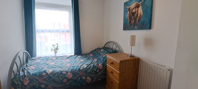 The house is large and has a shared bathroom with bath and shower, there is plenty of shared space with a living room and kitchen/diner, with induction hob, oven, air fryer, washing machine, tumble dryer, dishwasher, large fridge-freezer and plenty of space. 1GB broadband suitable for home working or streaming.