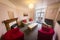 The large comfortable sitting room with gas fire, has a television and seating for 5 persons.