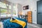 The wood effect panelling is the perfect backdrop to the midnight navy upholstered double bed with memory foam mattress ensuring you have the perfect place to sleep1
