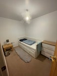 As a family house, all amenities are included; Separate fridges freezers, washing machine, dryer, microwave, dishwasher, coffee machine. The house includes a large sitting room with a large tv with various applications available for use. The kitchen is spacious and includes a large dining table plus aforementioned amenities. Each floor has its own bath/shower and toilet allowing privacy and personal routines. A communal cleaner comes every week to manage the bathrooms and public areas but personal neatness and cleanliness is absolutely important. There is access to a garden and a patio and also a locked garage. The house also comes with a security system for safety and parcel delivery management. All occupants are professionals and are rarely in during the day. All rooms have personal locks.