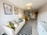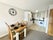 Your Kkitchen is open plan with solid wood Dining table, the kitchen has a beautiful design, the kitchen is a wraparound shape with grey units, silver accents, white tiled splashback and black worktops, with grey tile effect floor to match.