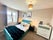 With a built-in wardrob and a free standing wardrobe, double size bed with comfortable mattress, chest of drawers and 2 large bedside tables with drawers and lamps included!