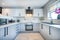 The design is stunning, with 3 ovens, 3 4-burner hobs, 3 microwaves, 3 sinks, 3 kettles, 3 4-slice toasters and 4 full height fridge freezers there is more than enough space for everyone!