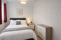 This is an outstanding houseshare in THE perfect location! Modern medium bedroom with ¾ bed, desk and chair and built-in cupboards. A Smart TV completes this lovely room in a large spacious modern shared house.