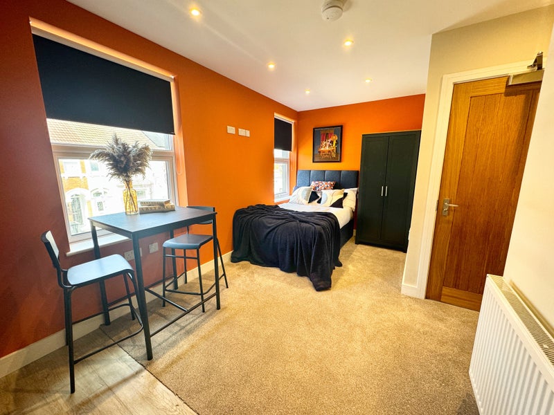 * Room 2 – £9000/month – Double en-suite room with private kitchenette (oven, hob, fridge, and storage) & pets considered – Available Now