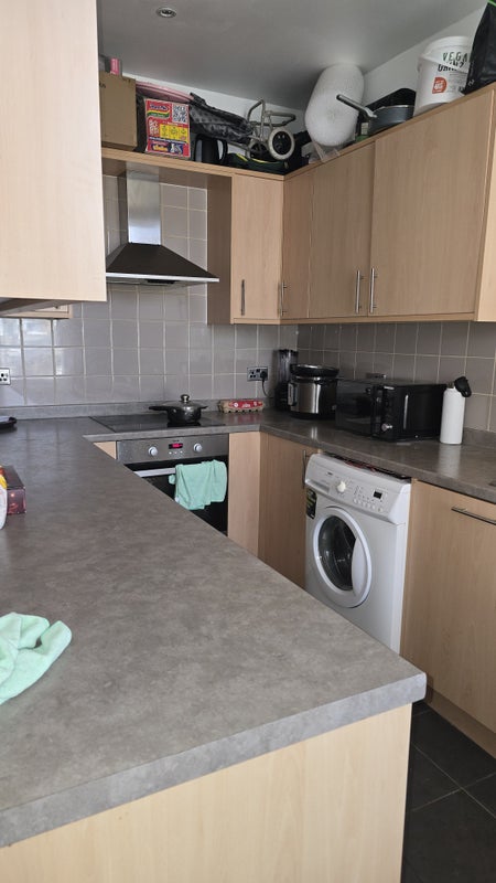 A clean and tidy single room available in a well-maintained two-bedroom flat in a calm, pleasant area. Shared living room, kitchen, and clean bathroom/toilet. Lovely garden and garage included.