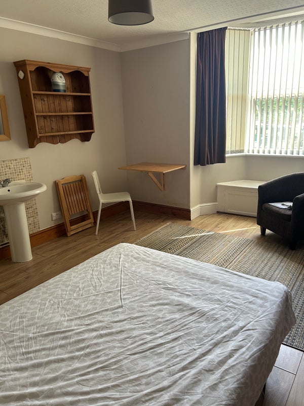 Quiet mature household long standing tenants in house , garden at separate rear entrance , no parking restrictions on road .
