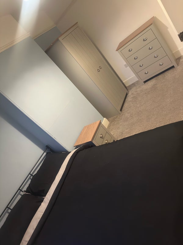 Each room is fully furnished with a double bed, chest of drawers, wardrobe, and bedside table, and comes with fresh bedding provided.