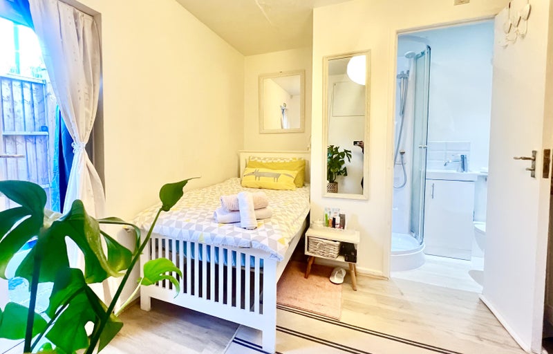 This self-contained space features a private entrance, ensuite and a fully equipped kitchenette. NO shared spaces at all.