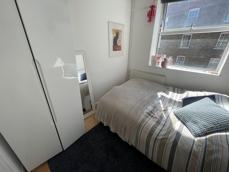Great location, super calm street and walkable to great areas like Shoreditch, Spitalfields, and Liverpool Street. Room for a desk, space not in photos but would fit!! Very well connected. 4 lovely flatmates, all uni students. They’re looking for someone they’d get along with and can have a live night with, but also respect each others space. Students only unfortunately due to Council Tax.