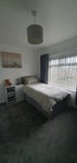 Lovely large bright room on first floor. It has a bed with storage underneath, a wardrobe two chests of draws, two bedside cupboards, mirror, tv, chair and desk. The bus route is a 2 min walk. Shared kitchen/dining area and garden. All bills except tv licence Inc. I have a small friendly dog. Washing and cleaning service included.
