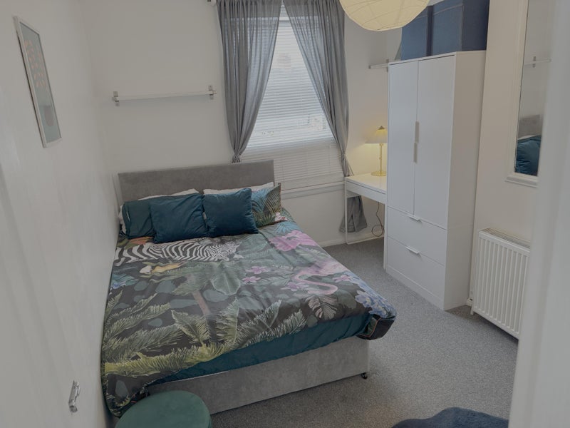 Hello, this room is for someone looking for a quiet and spacious place to call home. The view backs onto the external garden. The room includes a double bed, wardrobe, desk and has space for additional furniture.