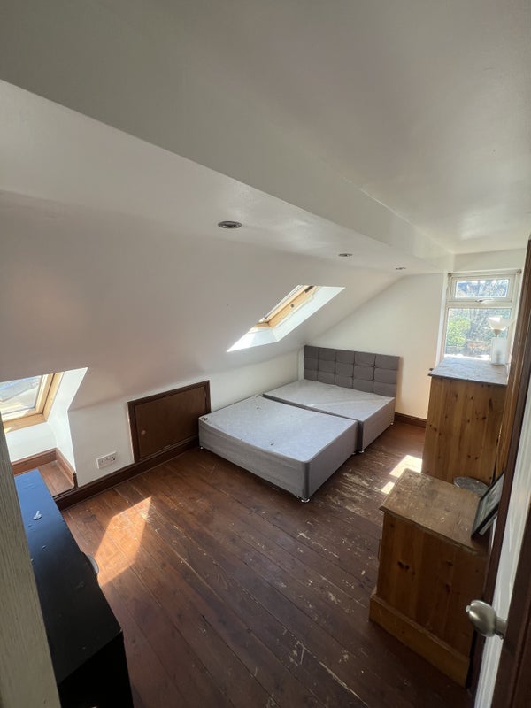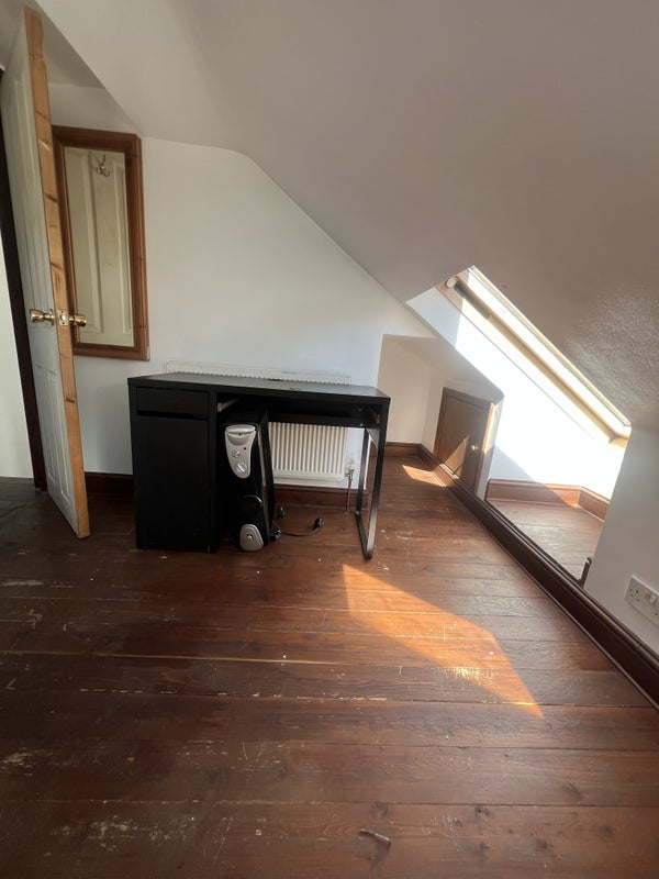 For rent a double fully furnished room with a bathroom that will be shared between you and 1 other person (MALES PREFERRED ) .The house is situated 10 minutes away from Thornton Heath railway station the closest bus stop is also 10 minutes away from the property. The bathroom and kitchen are shared however the bathroom only between yourself and 1 other person that occupies the loft room next doorto this one. The house is 3 stories and the room is in the loft, so please bear the stairs in mind. The room is a comfortable size a double bed or single bed will be ordered for you (your preference) the room has pine furniture . The room has a big radiator and double glazing also spotlights with a dimmer option. As the room is in the top of the house it is quiet and very secluded perfect for someone studying or wanting to just work and be able to unwind when they come home. Wifi is available in the house also and bills vary due to consumption use this is something that will be discussed upon viewing.
