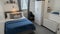 The small dresser in the photo has been replaced with a large white 2 door wardrobe with hanging rail storage, and two large drawers. There is also space under the bed for storage and more room for additional furniture.
