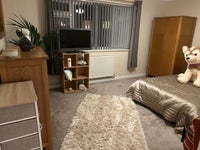 The flat has been refurbished throughout and the room is fully furnished. There is a King bed, built in wardrobe, freestanding wardrobes, chest of drawers, wash basket and a bedside table with light. The room is carpeted, with fitted blinds and curtains.